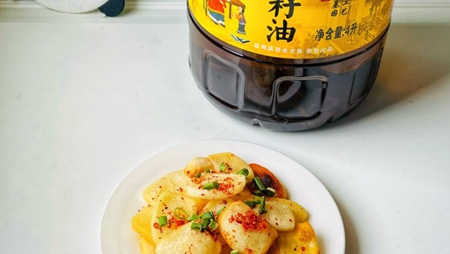 今天用传承传统工艺,非转基因厚料,物理压榨的外婆乡小榨菜籽油做炸年糕。小时候的菜油香,去腥提味特别香。