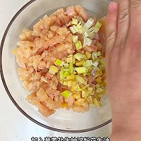 做法图解1:鸡胸肉切丁,加入葱姜生抽盐淀粉花生油,搅拌均匀