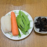 做法图解1:备料:藕和胡萝卜削皮,荷兰豆撕掉边筋,木耳提前泡发