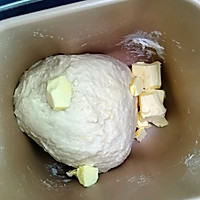 做法图解7:加入软化的黄油,继续揉面键揉出手套膜,我是用了两个揉面程序,每次20分钟