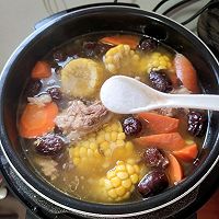 做法图解3:放入姜片,红枣,甜玉米,胡萝卜!