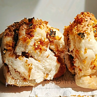 做法图解10:发酵完成,刷一层蜂蜜水,撒肉松