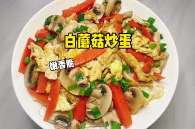 美美生活小能手老师分享的白蘑菇炒蛋的做法,怎么做简...