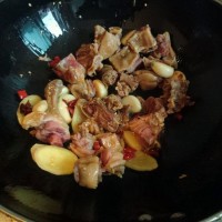 8. 翻炒好的板鸭,加入半锅水加入八角,(做火锅所以需要一定量的水)盖上锅盖大火烧开!